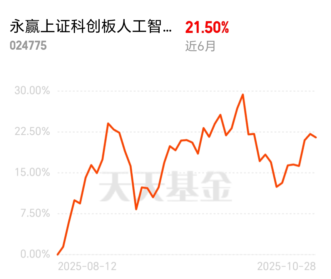 我重点关注的$永赢上证科创板人工智能指数发起C$ 成立78天天,收涨21.50%,表现优于同类基金,目前规模不大,我感觉可操作性更大,准备开始建仓了。$永赢上证科创板人工智能指数发起C$