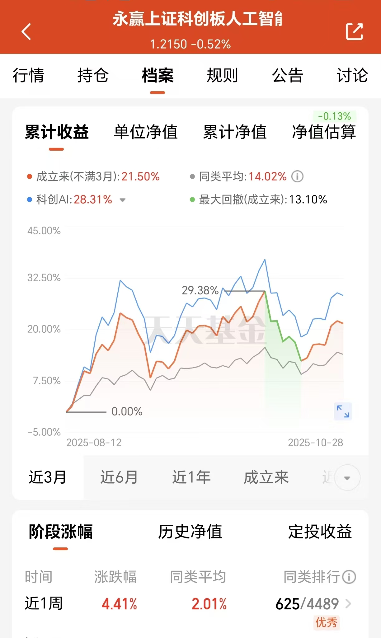 接下来还有几个催化剂值得关注:10月底美联储议息会议大概率延续降息,全球流动性宽松对成长股是直接利好;国内算力枢纽建设进入落地期,光模块、AI服务器等硬件需求会持续超预期;人形机器人领域,最近宇树科技发布的新一代仿生人形机器人关节数量增加63%,动作灵活性大幅提升,商业化落地再进一步。这些事件都会成为科创AI板块的上行动力,而永赢上证科创板人工智能指数发起C(024775)跟踪的指数正好覆盖了这些细分领域——半导体权重超50%,光通信、机器人等前沿方向占比30%,相当于把整个AI产业链的核心资产都打包了。
