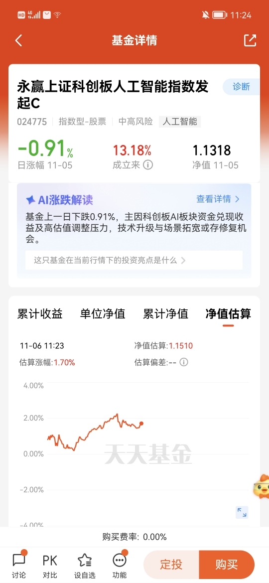 $永赢上证科创板人工智能指数发起C$ 一键布局AI芯片、光模块、机器人等核心资产。今天终于触底反弹,开始上涨了。成立以来13.18%的涨幅,业绩表现也可以。当前市场风格已经非常清晰,资金正从防御板块向科技成长切换。看好就跟上,相信后市值得期待。#科技小登大揭秘#