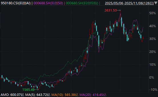数据来源:科创板日报,wind,2025/5/6-2025/11/6 11:28,科创50指数(000688)、科创100指数(000698)、科创综合指数(000680)、科创AI指数(950180),过往表现不预示未来。