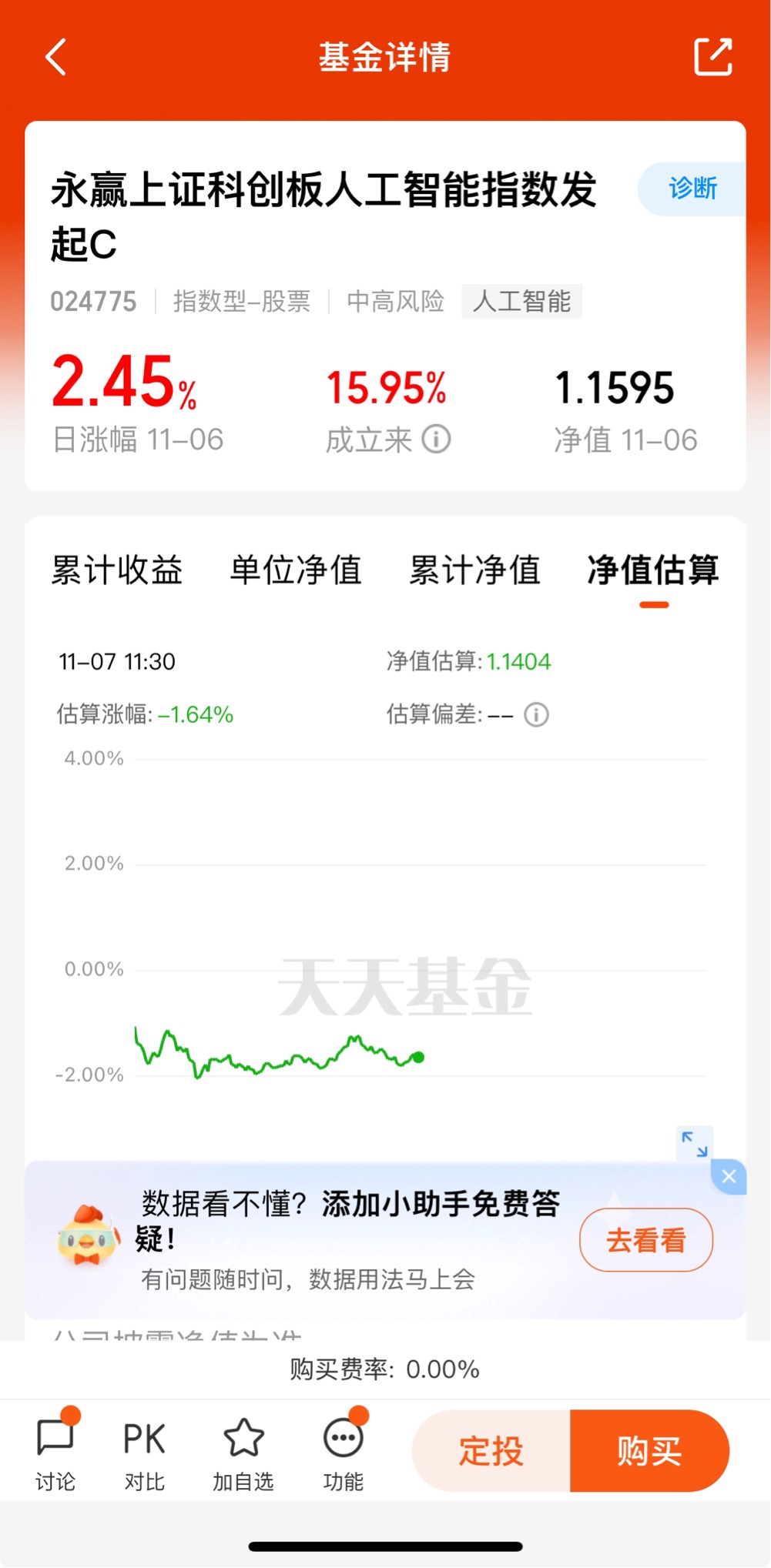 $永赢上证科创板人工智能指数发起C$昨天上涨2.45%行情回暖了,深度跟踪科创板