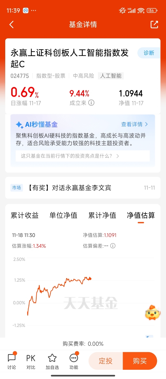 昨晚逆势上涨的$永赢上证科创板人工智能指数发起C$涨幅0.69%。新基成立以来涨