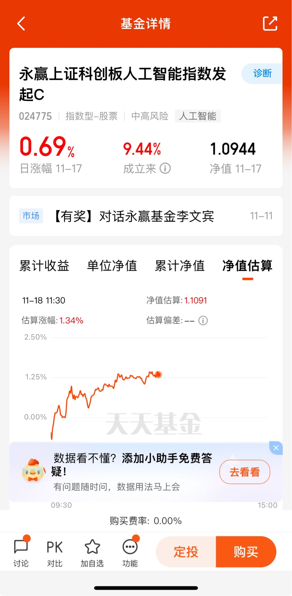 $永赢上证科创板人工智能指数发起C$昨天收0.69%,近3个月收7.89%,还有