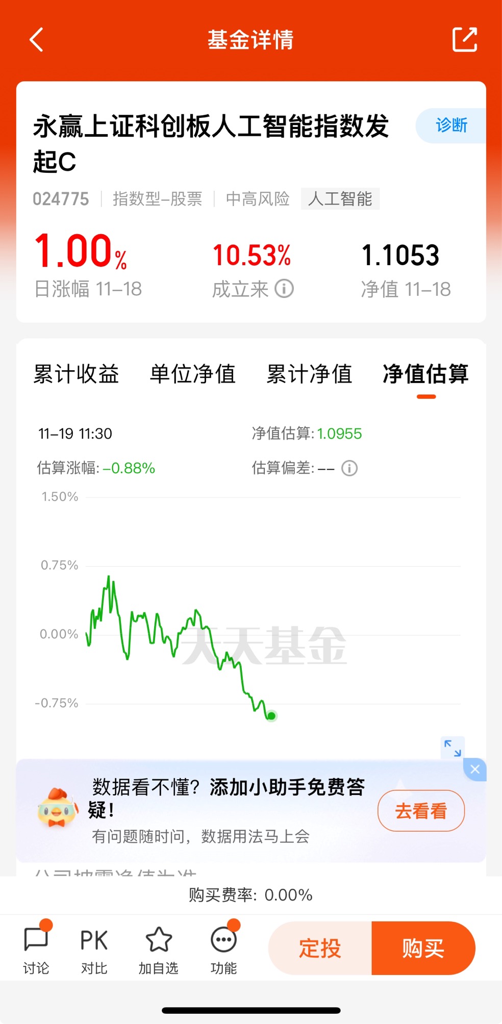 $永赢上证科创板人工智能指数发起C$昨天收1.00%,近3个月收8.96%,还有