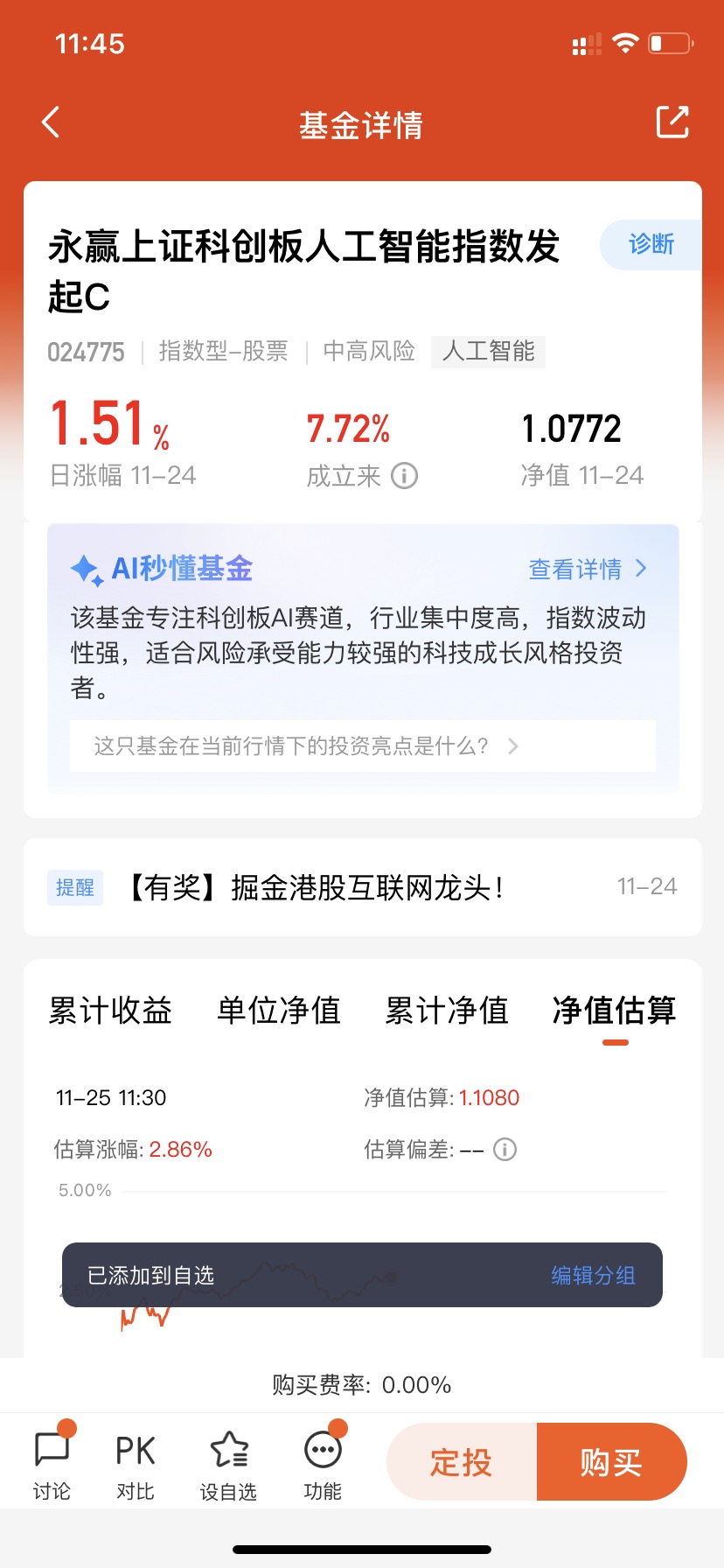 $永赢上证科创板人工智能指数发起C$ 昨天涨了1.51%,这里聚焦科创板AI产业链的指数基金,行业集中度高,科创今日集体反弹,科创AI涨超3%,科创政策红利下,科创板作为资本市场支持科技创新的重要平台,近年来政策支持力度持续增强,随着相关政策利好不断,后市值得期待了!#青禾创作计划#