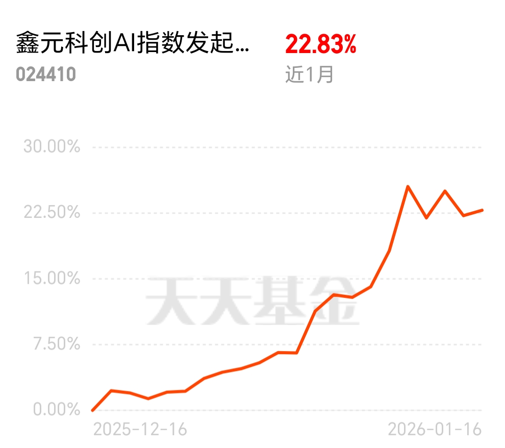 鑫元科创AI指数发起式C近月涨22.83%,精准覆盖AI全产业链,在算力、算法、