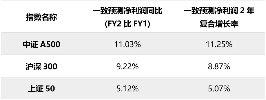 根据Wind给出的盈利预测,截至10月底,中证A500指数成份股的净利润同比(FY2比FY1)增速为11.03%、净利润2年复合增长率为11.25%,这两组数据均优于同期沪深300和上证50,证明成份股在未来依然具备较好的增长质量。