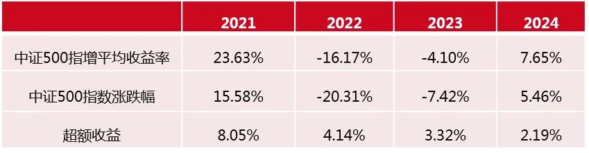 以沪深300、中证500指数为例,2021年-2024年指增策略长期普遍有超额。