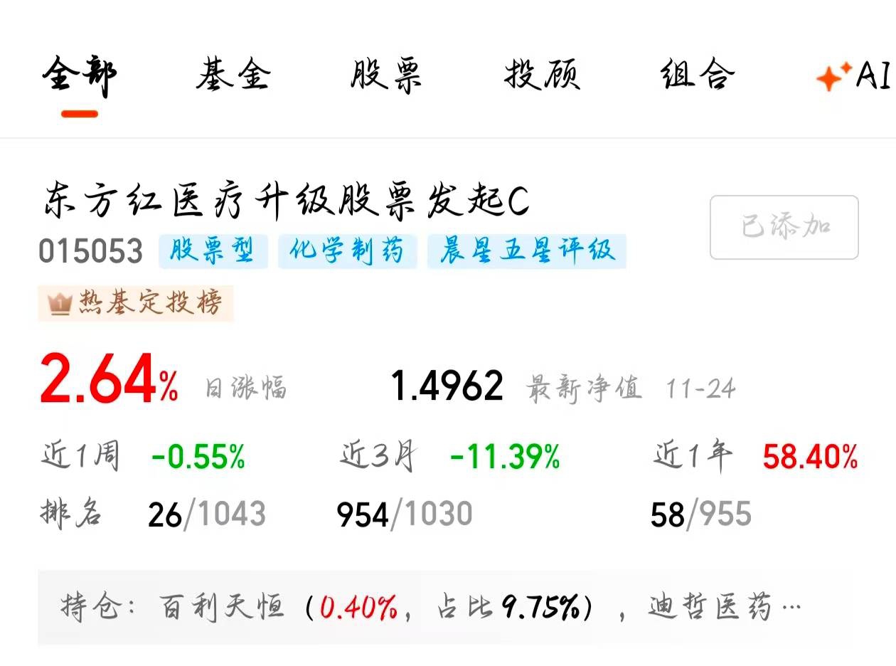 东方红医疗升级聚焦基因细胞治疗等前沿领域,AI赋能下昨天上涨2.64%,近半年16.71%业绩领跑医疗基。