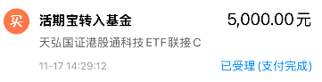 我加仓$天弘国证港股通科技ETF联接C(OTCFUND|024886)$ 5000元!受美股科技下跌的影响,港股科技在横盘多天、临近突破的档口又被带了下来,正好我仓位不多,趁调整继续大额上车一笔!跟踪的港股通科技这会看跌1%左右,距离下方半年线支撑不远了,我认为这个强支撑很难跌破,长期看估值也低于历史约80%的时间,便宜筹码耐心拿着就行。