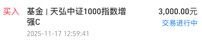 我加仓$天弘中证1000指数增强C(OTCFUND|014202)$ 3000元,跟踪的中证1000指数这会看涨0.1%左右,最近一直在多条均线附近窄幅波动,下面支撑位很多,青春判断这里震荡几天就该向上突破了,趁今天小盘整果断上车一笔。