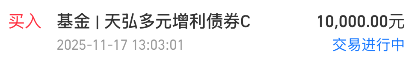我加仓$天弘多元增利债券C(OTCFUND|015525)$ 10000元!四季度债券市场持续回暖、高股息红利策略也开始持续上涨创新高,看好这两个方向我继续大额发车天弘多元增利,今天直接加1万。