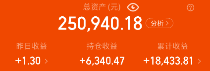 多元增利属于高波固收+,股票持仓在19%左右、且持股集中度高,所以日内弹性和收益潜力都更大一些,行业上覆盖银行、燃气、白酒、建材等高股息方向,采用的是信用债做为底仓稳住收益、红利做为进阶博弈高收益,近6个月就涨了6.33%,我有闲钱就存一些。