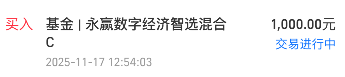 我加仓$永赢数字经济智选混合发起C(OTCFUND|018123)$ 1000元,这只重仓国产算力,利好刺激下,今天盘中逆市飘红,这会看涨0.6%左右,趁还没涨太多,行情也才刚刚开始,我继续加仓一笔。