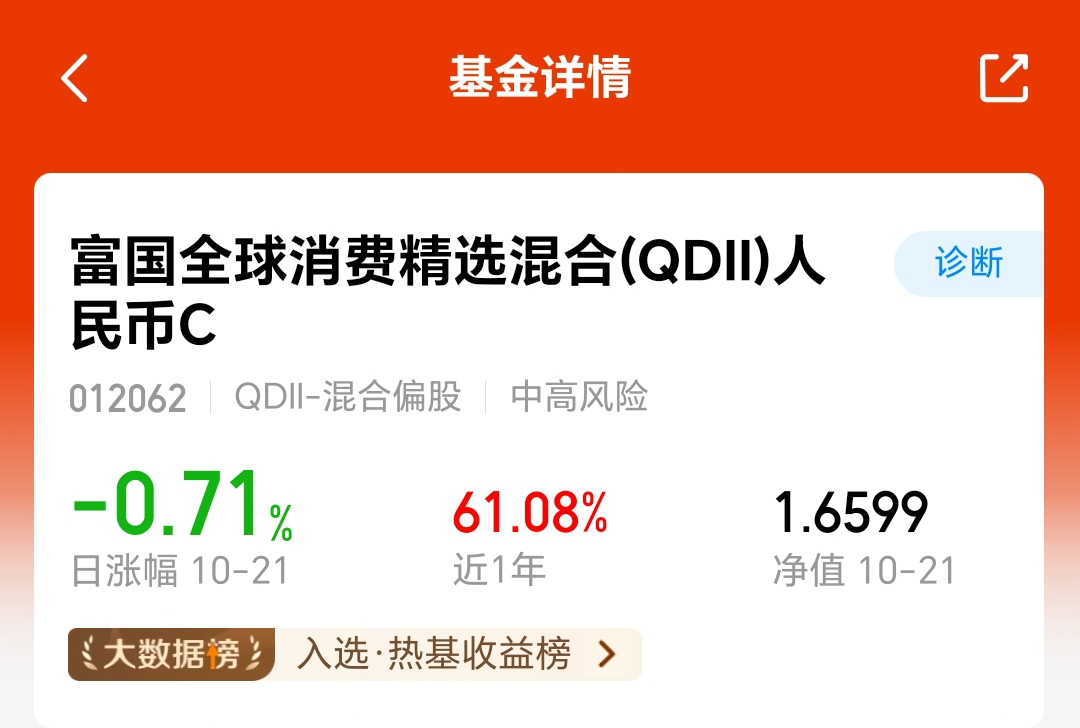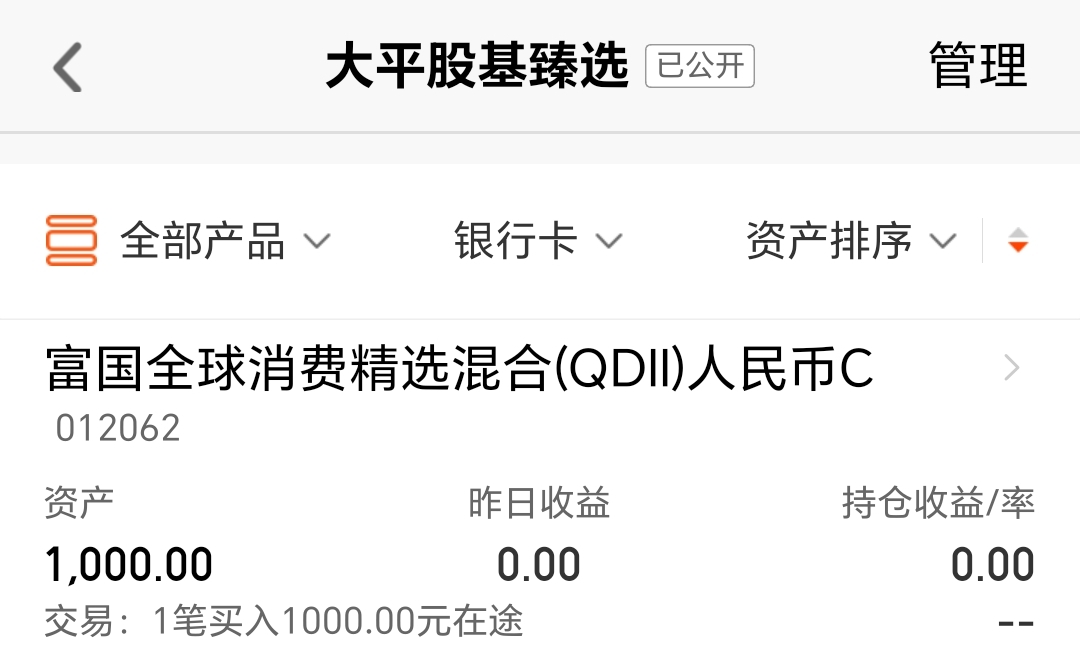 今天我买入$富国全球消费精选混合(QDII)人民币C(OTCFUND|012062)$1000块钱。