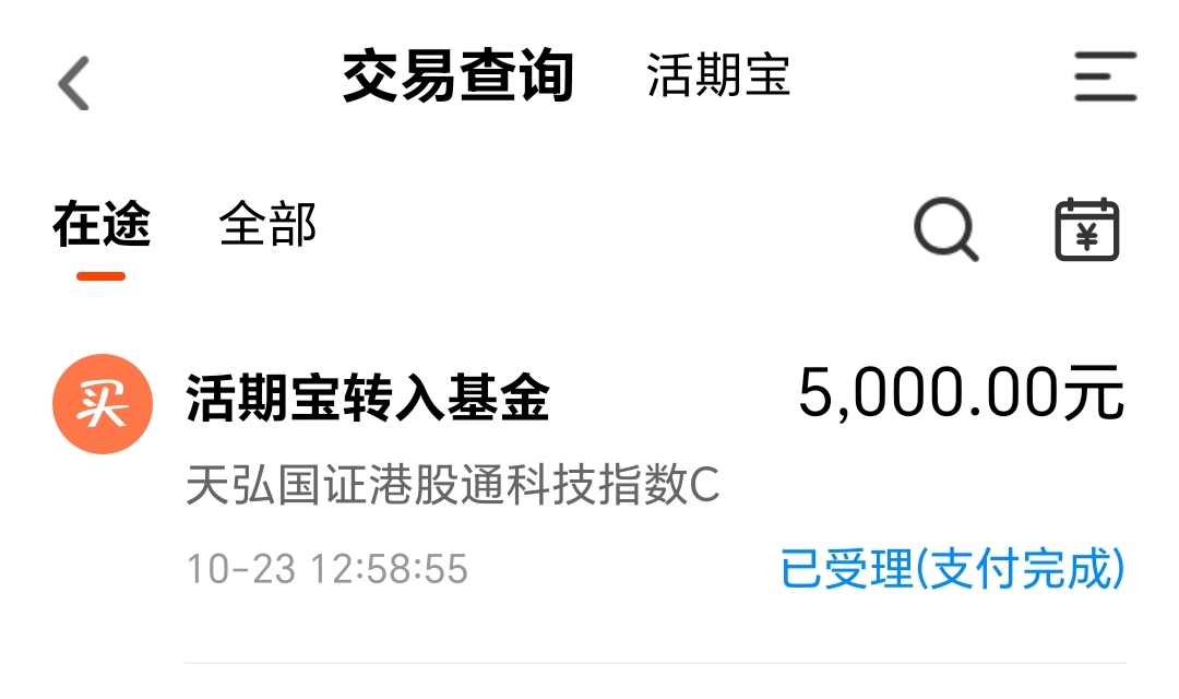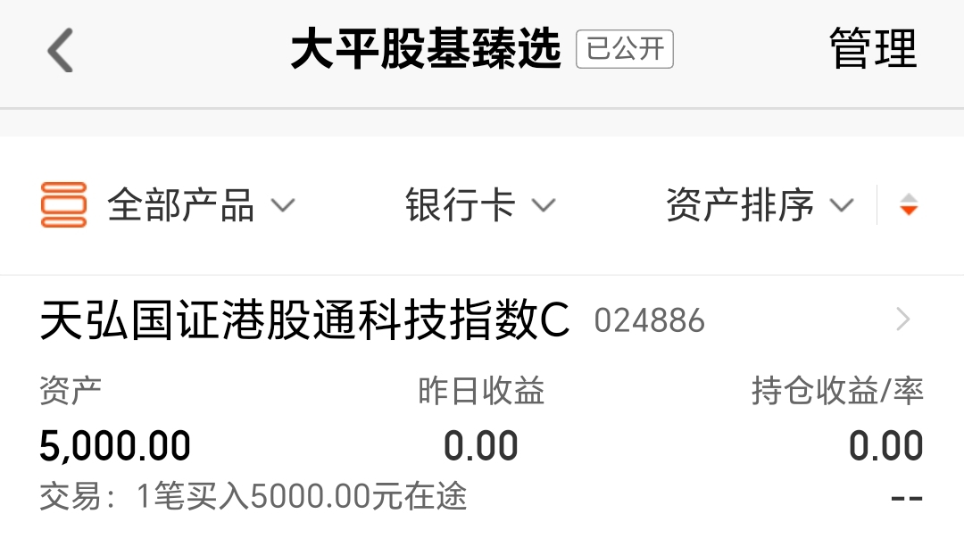 今天我买入$天弘国证港股通科技指数C(OTCFUND|024886)$5000块钱。