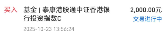 今天我买入$泰康香港银行指数C(OTCFUND|006810)$2000块钱。