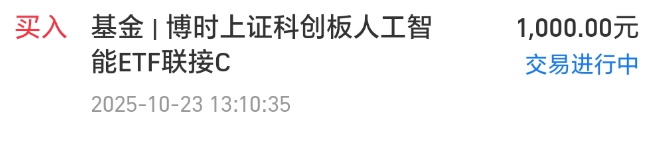 今天我买入$博时上证科创板人工智能ETF发起式联接C(OTCFUND|023521)$1000块钱。