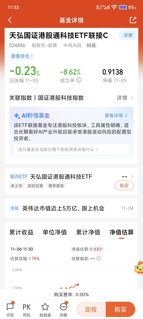$天弘国证港股通科技ETF联接C$ @天弘基金 #晒实盘# $天弘国证港股通科技ETF联接A$