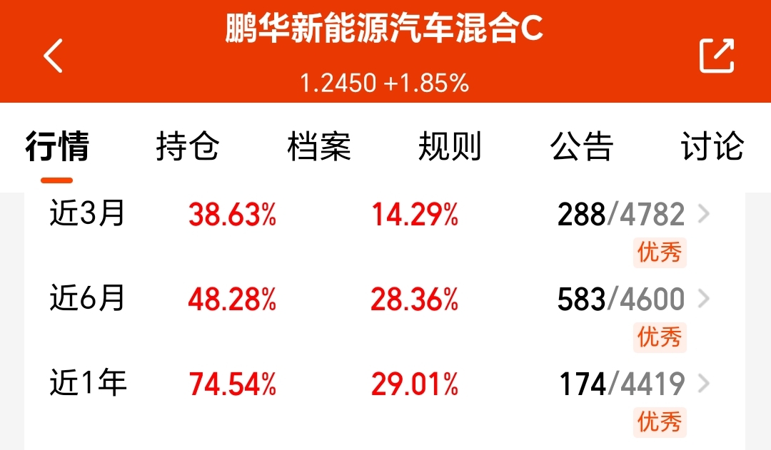 这个基金重点布局固态电池方向,我目前盈利近30%,它近3个月涨38.63%,近6个月涨48.28%,近1年涨74.54%。短期虽然涨了不少,但长期看,固态电池的产业趋势才刚刚开始,未来的成长空间我认为值得期待。