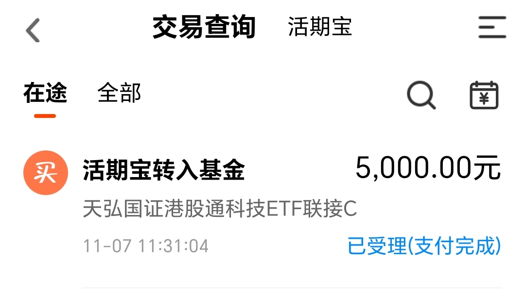 今天我买入$天弘国证港股通科技ETF联接C(OTCFUND|024886)$5000块钱。