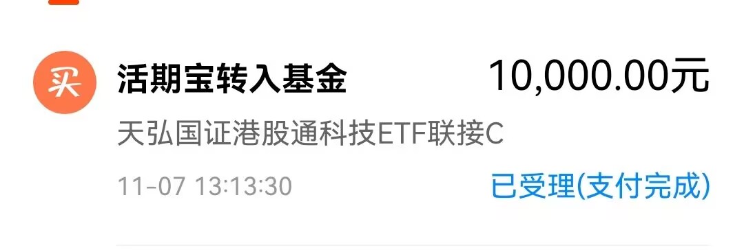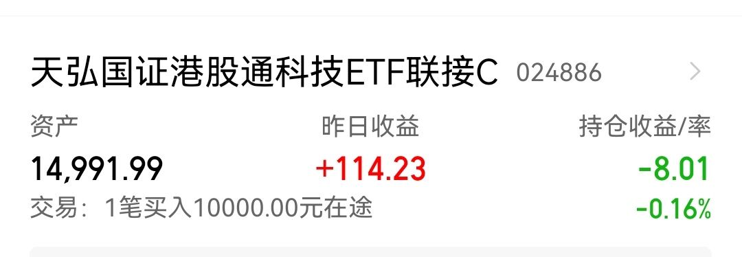 1、$天弘国证港股通科技ETF联接C(OTCFUND|024886)$,买入10000元