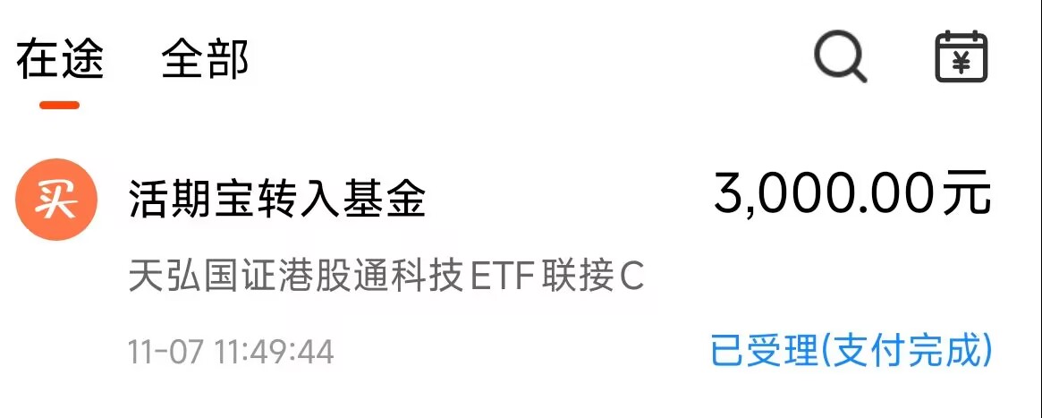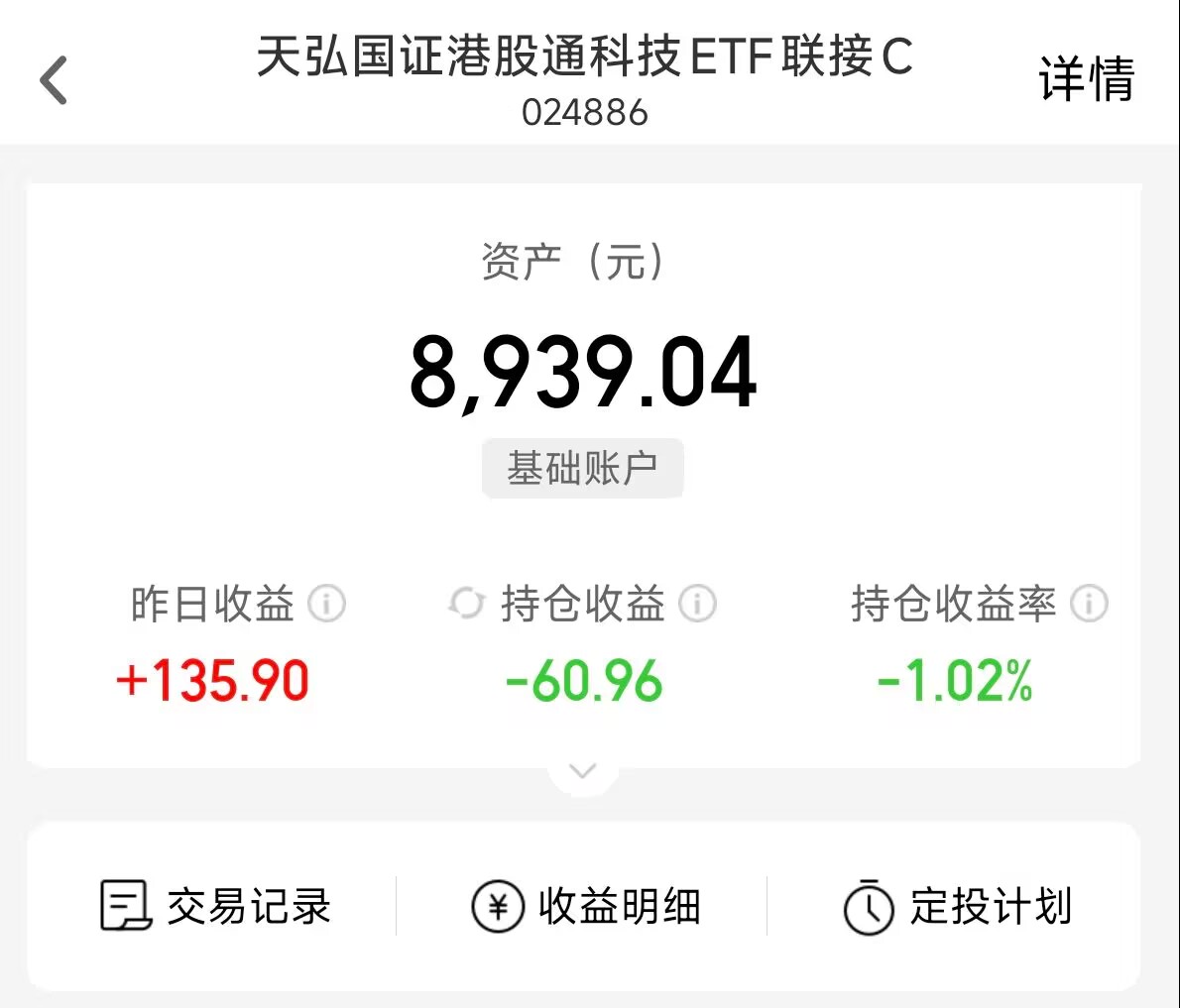今日加仓$天弘国证港股通科技ETF联接C(OTCFUND|024886)$3000元,指数昨天拉升收回5日线支撑,但上仍存阻力,直接上攻不易短期难免出现波动,而今天调整缩量更看正常回踩蓄力,所以今日准备适当低吸积累份额。而指数主要聚焦互联网科技、半导体及生物医药领域优质个股,质地优质,并且相对恒生科技而言在阿里、腾讯、小米等几个核心大厂的权重可以达到15%,集中度更高,所以相对弹性也更突出。