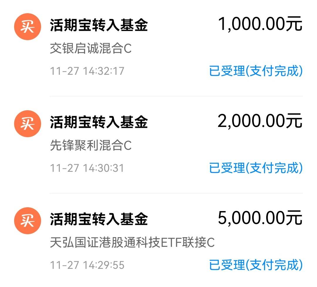 1、$天弘国证港股通科技ETF联接C(OTCFUND|024886)$,买入5000元