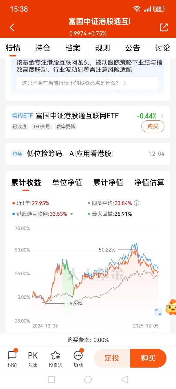 目前天弘那支港股科技一直小亏,倒回头看富国中证港股通互联网ETF联接C盘子有10