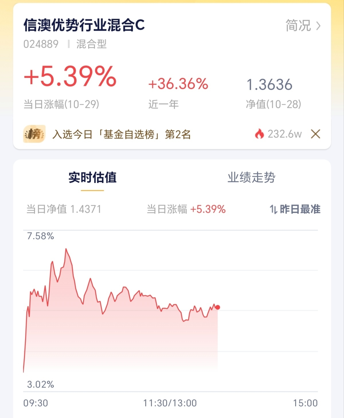 $信澳优势行业混合C$今天估值大涨5.39%,这个经理的基今天是全线大涨,厉害了