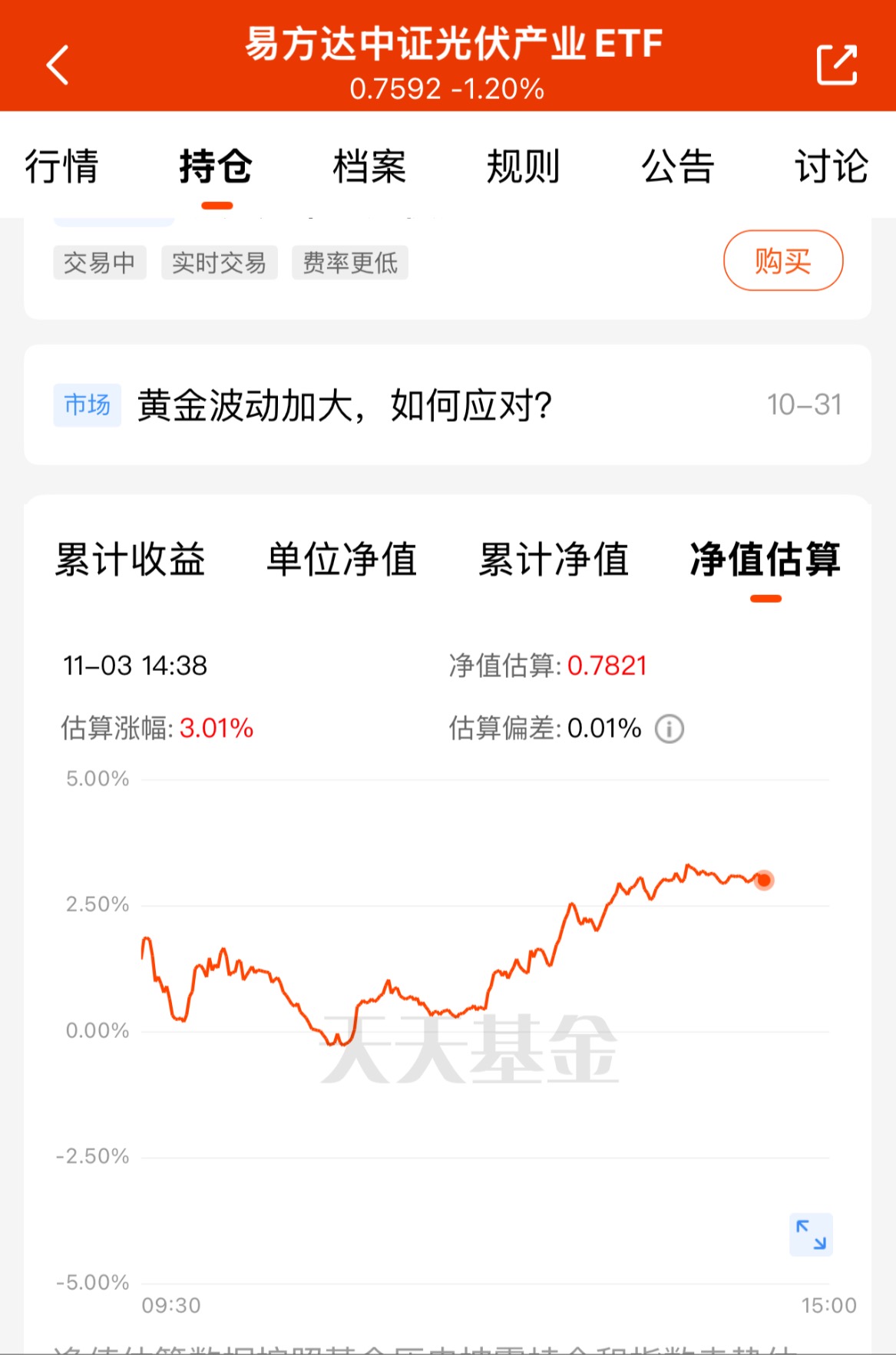 光伏政策+基本面都给力,今天上涨趋势稳,可适当加仓$易方达中证光伏产业ETF联接