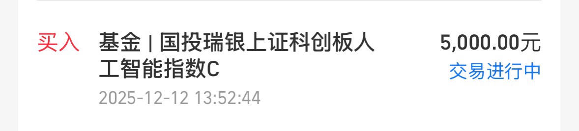 对了,今天我还加了5000元$国投瑞银上证科创板人工智能指数发起式C$