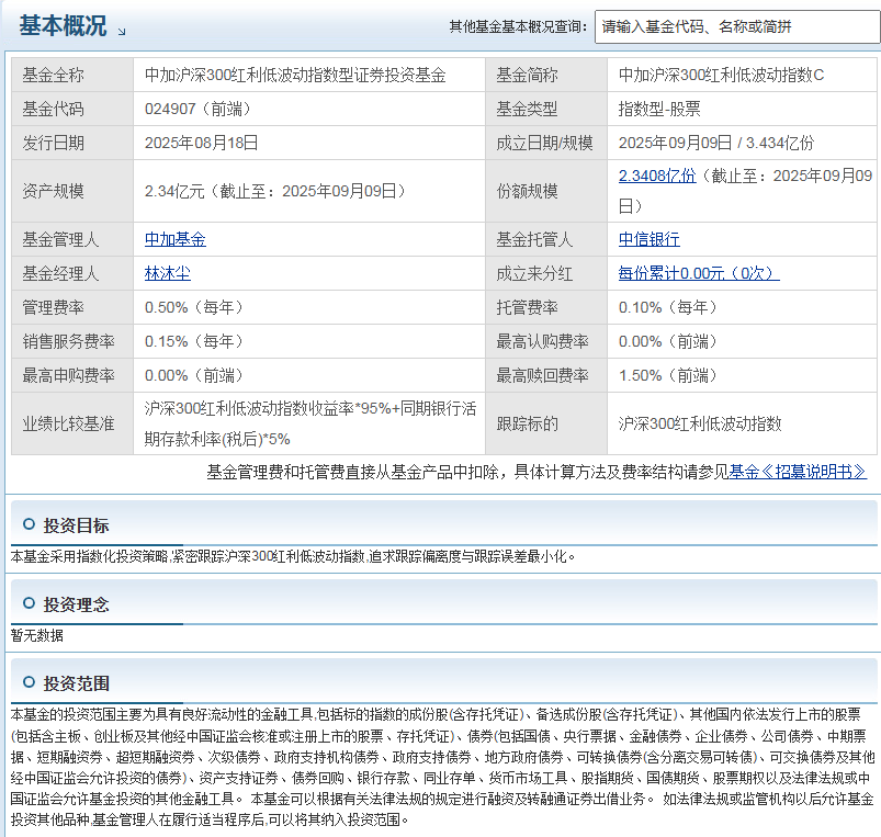 总体来说,中加沪深300红利低波动指数C(024907)在当前市场环境下,凭借其策略、指数以及管理团队等方面的优势,是一个值得考虑的投资选择,但投资有风险,还是要结合自身情况谨慎决策。