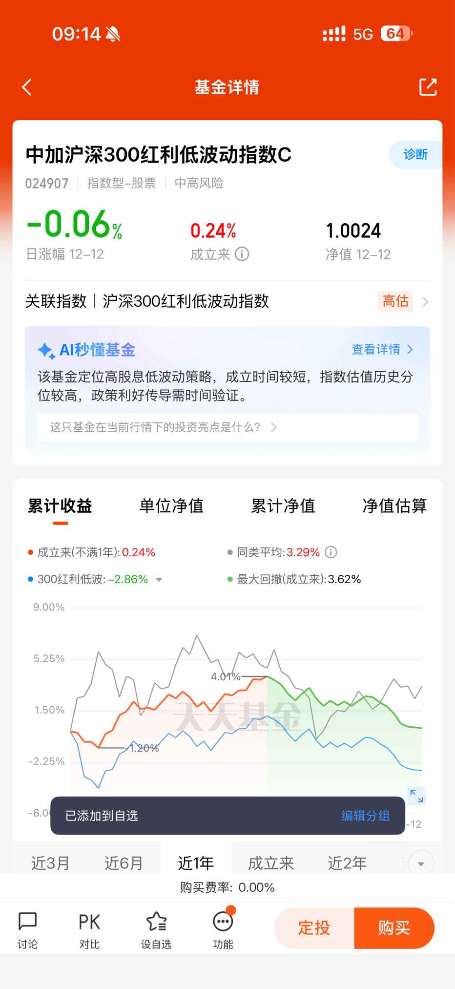 作为一名坚守长期稳健配置的投资者,在震荡市中我更偏爱“红利+低波动”的双buff组合,而中加沪深300红利低波动指数C,正是我核心持仓里的“抗跌增值利器”。