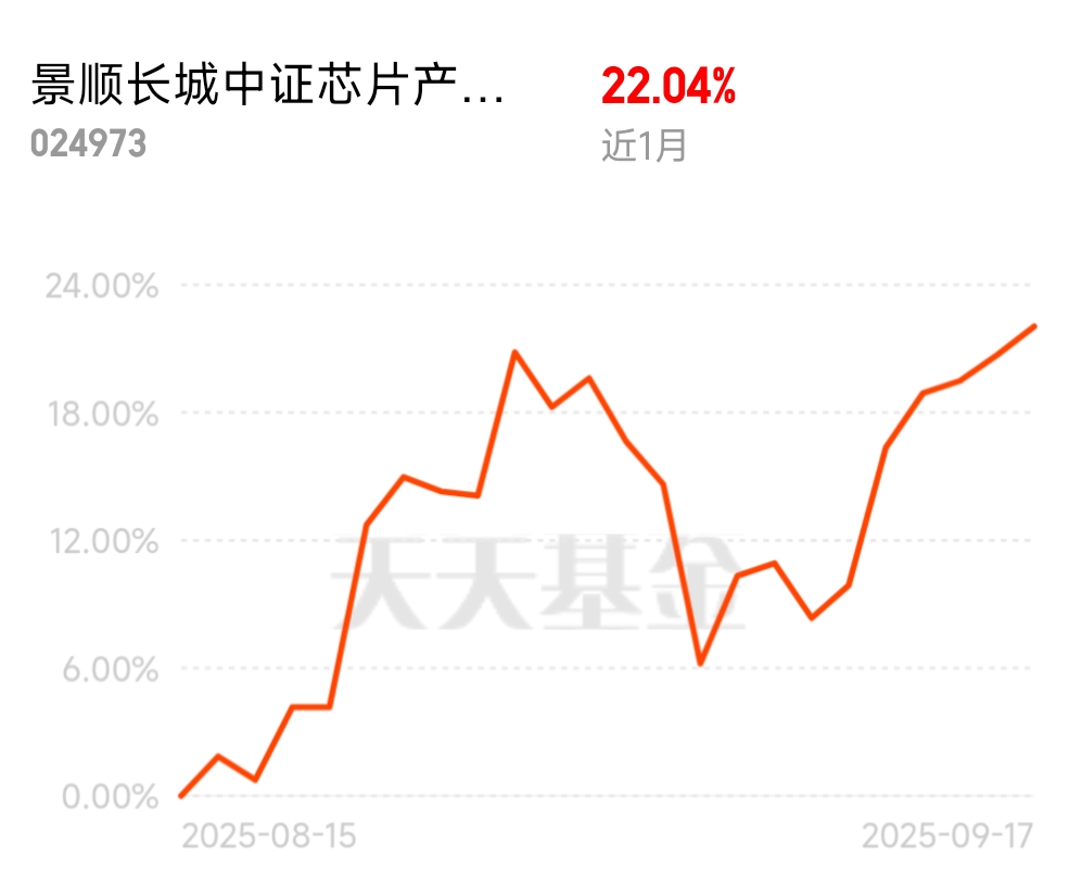 最近科技方向也在发力,$景顺长城中证芯片产业ETF联接C$月度涨幅超过22%,这