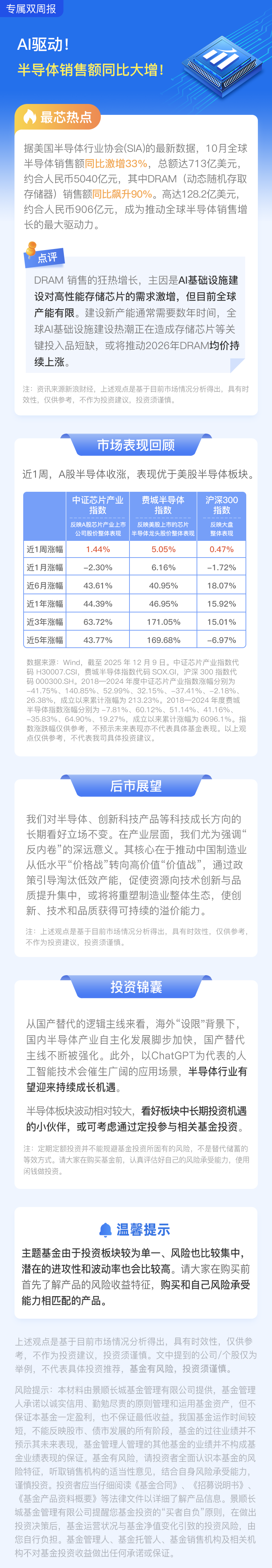 【半导体周报】AI驱动!半导体销售额同比大增!