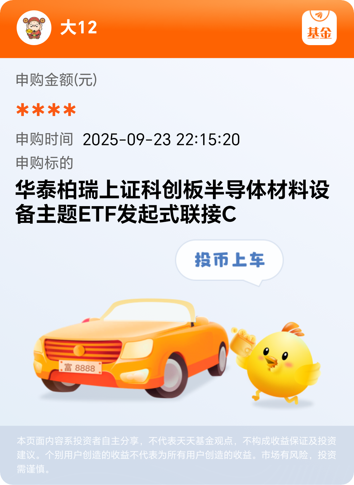 $华泰柏瑞上证科创板半导体材料设备主题ETF发起式联接C$ 今天表现神勇,逆市大涨3.5%!查看近一周收益已有10.89,在震荡市中实属难得,继续持有。