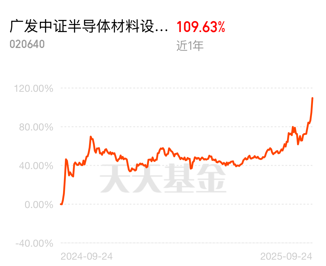 大基金三期重点就是投设备和材料,这是明牌。加上国产替代的紧迫性,设备板块景气度会很长。$广发中证半导体材料设备ETF发起式联接C$今天大涨7.64%,近一年涨幅也是109.63%,比其他同指数高了10%,算是提前反映了点预期,和$广发中证半导体材料设备ETF发起式联接C$ 拿住不动了