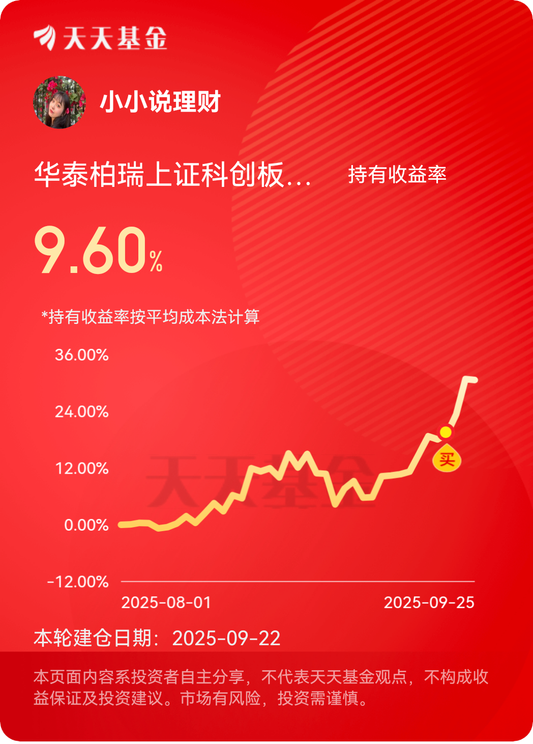 宝子们好呀,就在刚刚,市场跌幅一度扩大,双创都在加速下跌,小小只想说——心别慌!跳水见得少了吗~查漏补缺还是主基调!向上的市场背景是很明确的,一两天的波动都是可以忽略的!小小再追加低吸一份$华泰柏瑞上证科创板半导体材料设备主题ETF发起式联接C$ ,咱就是说,今天虽然市场跌幅比较大,但是小小持有的这只还是在逆势上涨,行情差的时候,少跌就是赚,小赚就是大赚,而且确实是要做顺势,就比如本周科创半导体设备已经大涨了10%,但还是能在弱势背景下做到抗跌,就是资金在默默流入的信号,所以小小顺势继续追加点份额,以利博利。