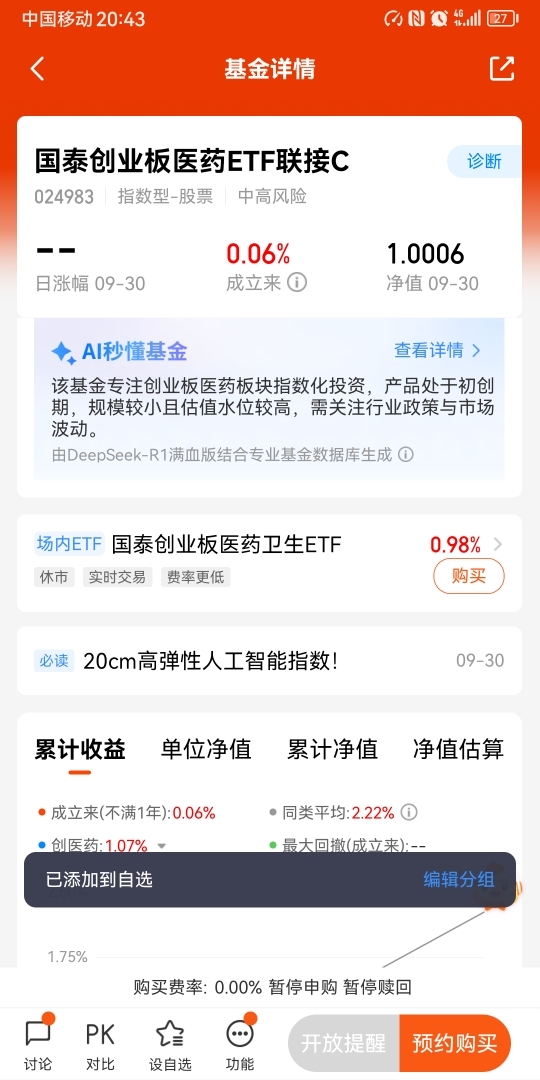 刚好,国泰创业板医药卫生ETF发起联接(A类:024982 C类:024983)9月10日-9月24日正式发行,认可医药板块长期逻辑的小伙伴可以关注!$国泰创业板医药卫生ETF发起联接A$ $国泰创业板医药卫生ETF发起联接C$