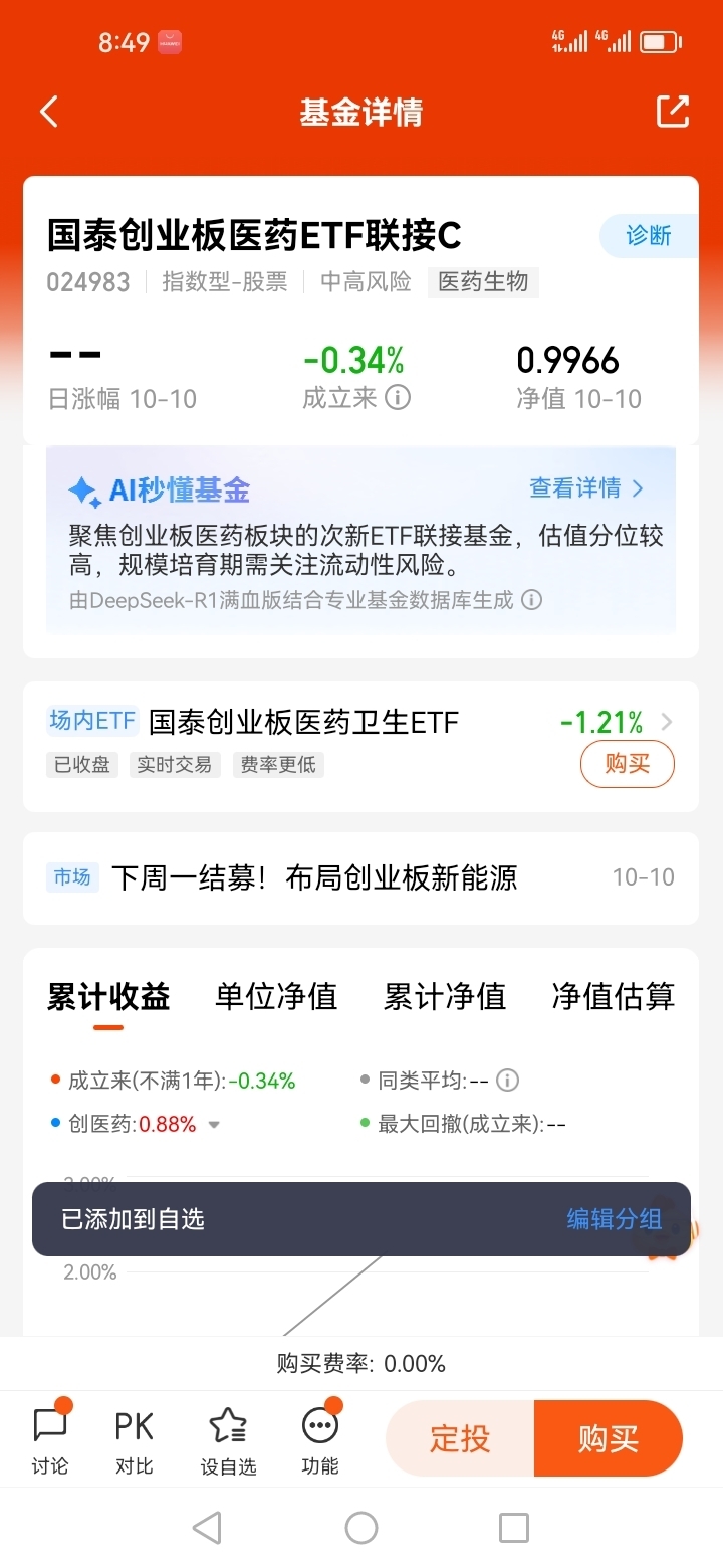 综上所述,我关注了国泰创业板医药卫生ETF发起联接(A类:024982 C类:024983),因为刘昉元基金经理对于医药行业有着相当深入的研究,而且他的投资经验也是相当的丰富。@国泰基金