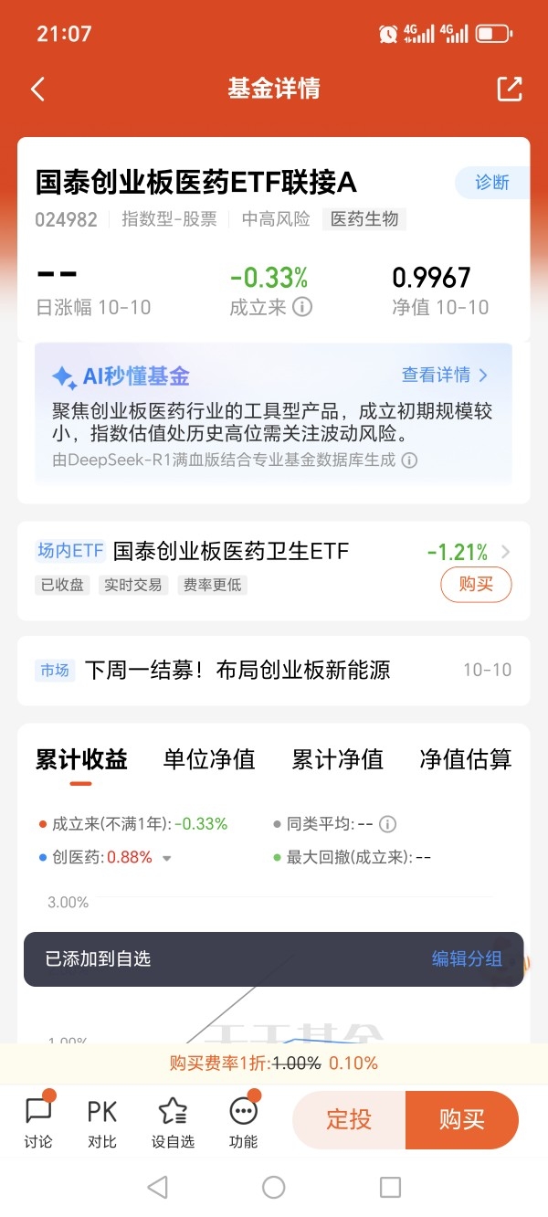 在市场上很多与创新药有关的基金中,经过反复的比对,我关注了国泰创业板医药卫生ETF发起联接(A类:024982 C类:024983),因为国泰基金是很多投资者心目中的投资理财好伙伴。@国泰基金