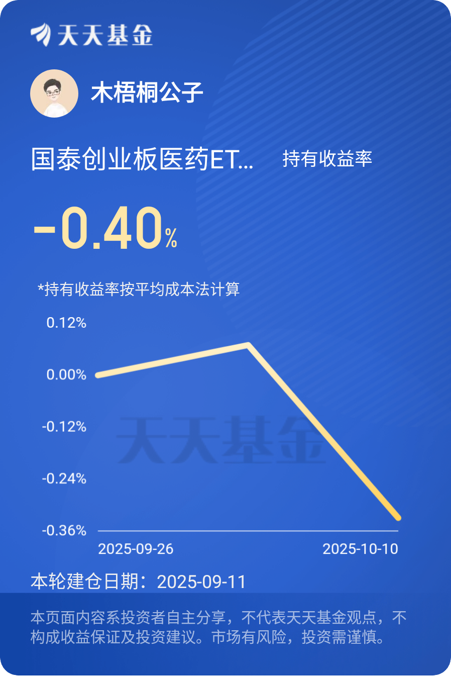所以,木同学认为创业板医药板块处于“政策底+业绩底”的关键节点,医疗器械国产替代、创新药出海、数智化转型等主线清晰。木同学已早早通过指数基金$国泰创业板医药ETF联接A$ 布局高景气赛道。中长期来看,老龄化加剧与技术创新将驱动板块持续增长,木同学期望以长期视角来把握盈利提升的红利。@国泰基金