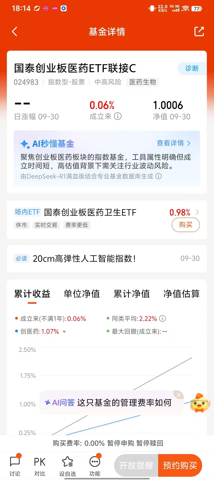总体而言,医药行业具有良好的发展前景和投资价值,但也存在一定风险。国泰创业板医药卫生ETF发起联接基金为投资者提供了一个便捷、高效的投资工具,可以帮助投资者分享创业板医药行业的增长红利。@国泰基金
