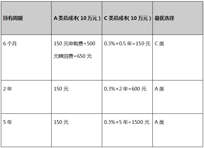 值得注意的是,2025年费率改革后C类销售服务费普遍下调至0.3%-0.4%,使得1-2年持有期的成本临界点更为模糊。投资者需根据具体金额计算平衡点:当持有期≈(A类申购费率C类年销售服务费率)时,两类份额成本相当。例如A类申购费0.15%、C类费率0.3%时,临界点为0.5年(6个月),此后A类更优。