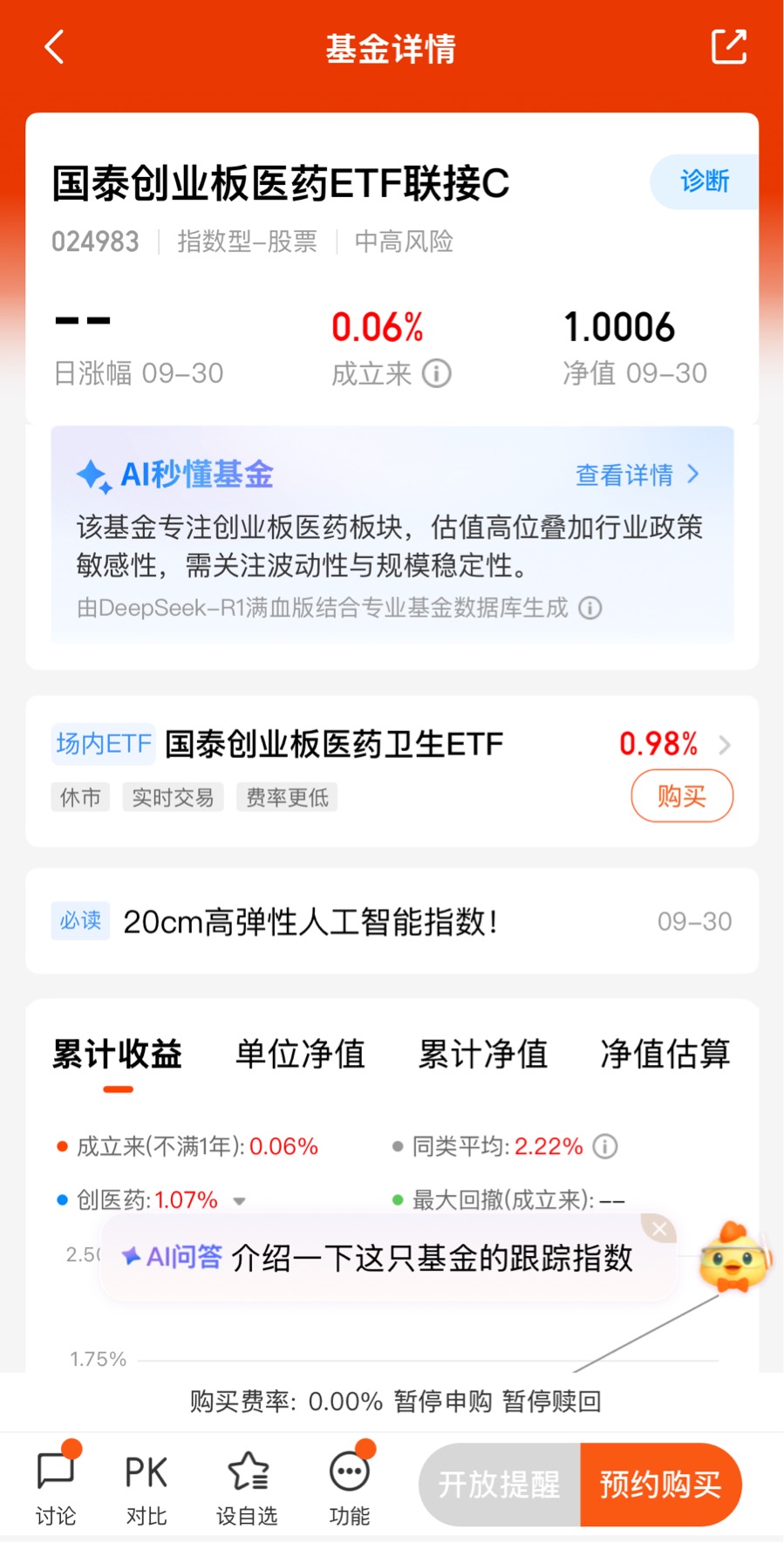 创新药械、CXO、高端设备等权重行业均处于政策与业绩双击阶段。医药板块已进入“政策底+业绩底”共振阶段,创业板医药凭借创新属性与成长弹性成为布局优选。国泰创业板医药ETF联接基金(159377)是高效参与工具,适合风险承受能力中等以上、看好医药创新升级的投资者。建议结合自身风险偏好,在回调时分批配置,长期持有共享行业成长红利。@国泰基金