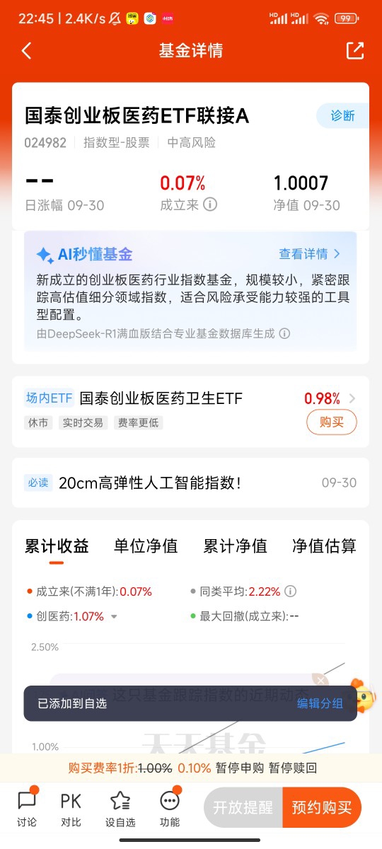 #20CM创业板医药来了# # 国庆节后 A股市场如何看?# #10月你看好哪些投资赛道?# $国泰创业板医药ETF联接C$