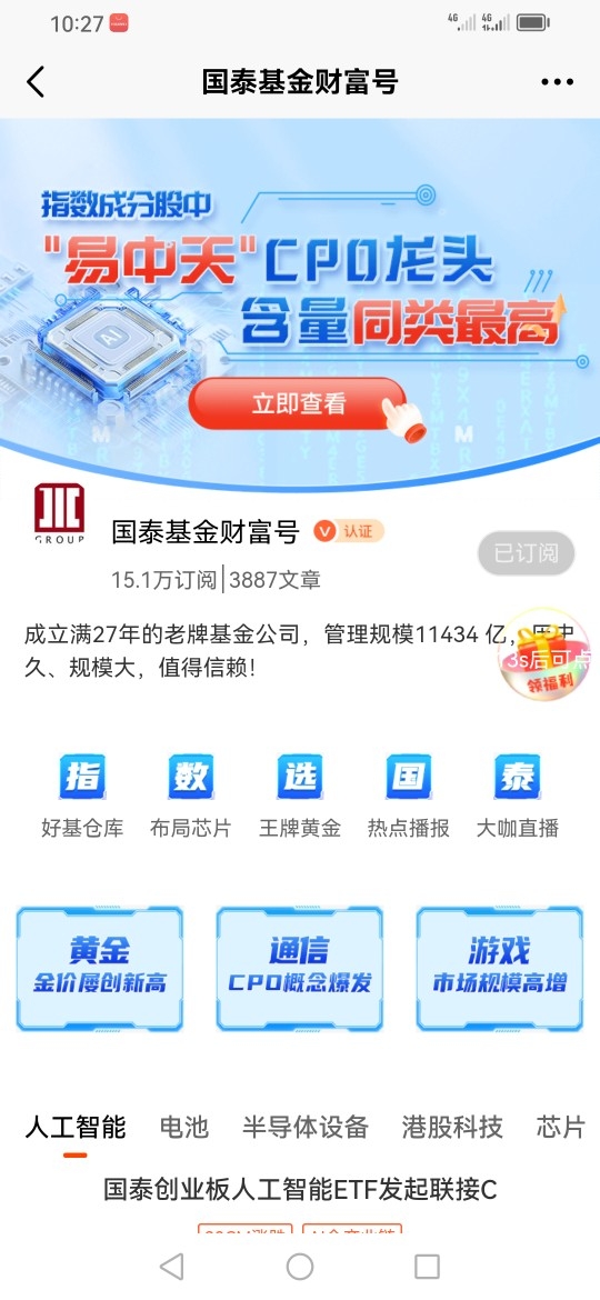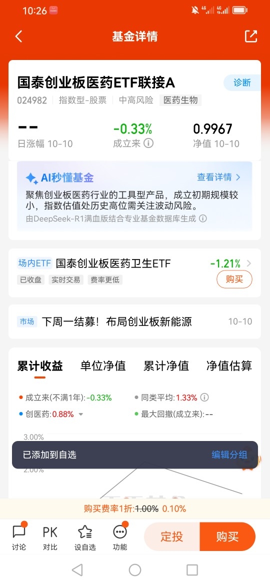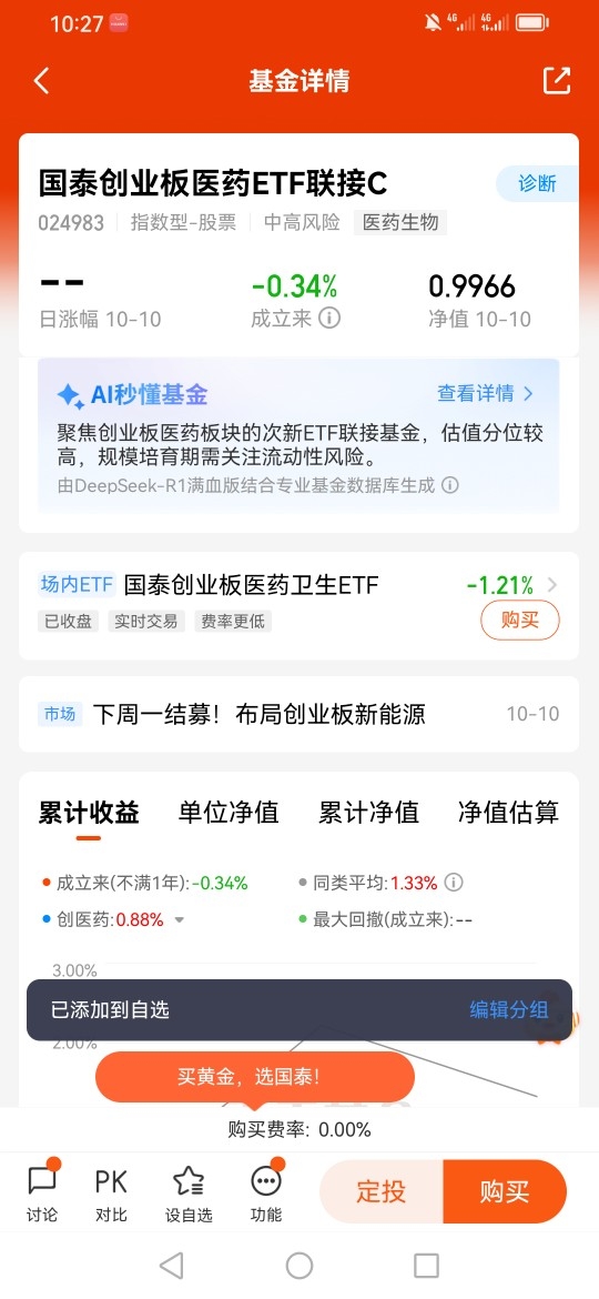 因为我密切关注了国泰创业板医药卫生ETF发起联接(A类:024982 C类:024983),因为国泰基金在投资领域相当专业。@国泰基金