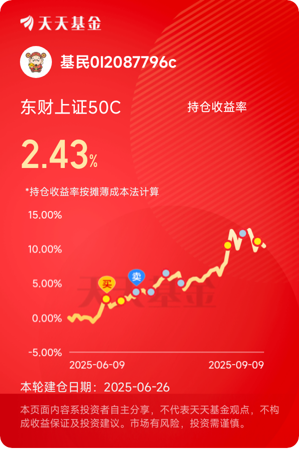 不过,单一赛道的机遇虽好,却也需兼顾投资的全面性与分散性。为了更充分地把握科创领域的整体机遇,不遗漏其他优质赛道的成长红利,我计划积极配置$东财上证科创50ETF联接A$。该基金紧密跟踪科创50指数,能够一键覆盖硬科技领域的优质企业,既可以持续分享芯片赛道的成长收益,也能捕捉到人工智能、生物科技等新兴领域的爆发机遇,是平衡风险、把握科创整体行情的优质选择。
