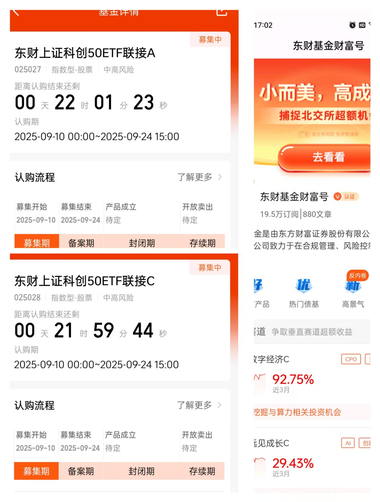 目前东财科创50ETF联接基金 (A类:025027,C类:025028)正在火热募集中!不但有望成为业绩亮眼、费率低、跟踪准的“宝藏基金”,并且,费率更是低到“没朋友”!管理费0.15%+托管费0.05%,两者合计仅0.2%,10万元持仓管理费+托管费1年仅需200元。我已把东财科创50ETF联接基金加入到我的自选中!